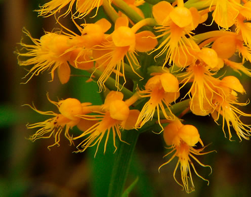 Since the latter two have overlapping bloom periods, it is not unusual to find their hybrid offspring, Platanthera xlueri (Luer’s hybrid fringed orchid).