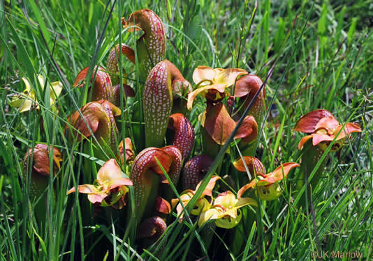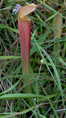 Leaves erect, 4-28" tall, reddish to greenish, with a rather small orifice, per Atlantic Coastal Plain Wildflowers (Nelson, 2006).