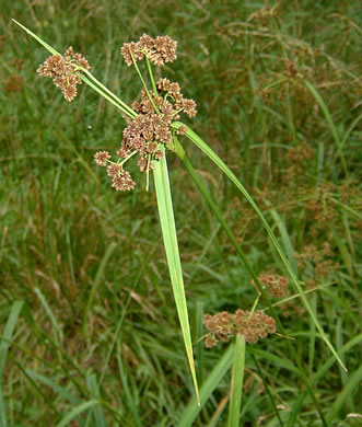 Spikelets in umbellate clusters or heads. Nutlets whitish; bristles us. absent, per Vascular Flora of the Carolinas (Radford, Ahles, & Bell, 1968).