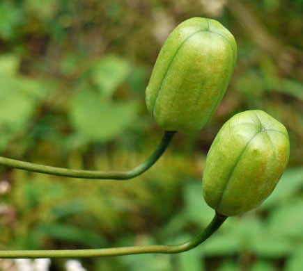 Fruits are hanging ellipsoid capsules, about 0.5" long, per Wildflowers of Tennessee, the Ohio Valley, and the Southern Appalachians (Horn, Cathcart, Hemmerly, & Duhl, 2005).