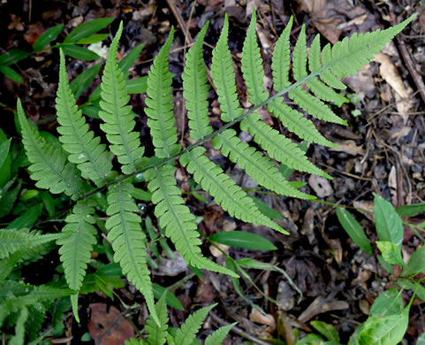 Pinnae mostly alternate, distant, almost sessile. Ovate-lanceolate, per Field Guide to the Ferns and Other Pteridophytes of Georgia (Snyder & Bruce, 1986).