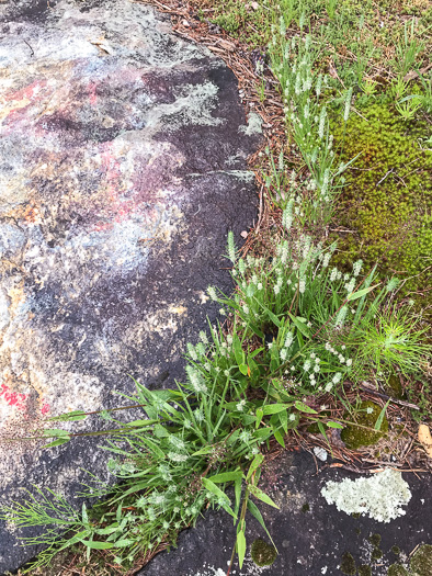 Separated from other Plantains by its narrow leaves and long hairy bracts, per Wildflowers of Tennessee, the Ohio Valley, and the Southern Appalachians (Horn, Cathcart, Hemmerly, & Duhl, 2005).
