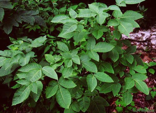 Terminal leaflet sessile, thus different from Poison Ivy and Poison Oak, per Trees of the Southeastern United States (Duncan & Duncan, 1988).