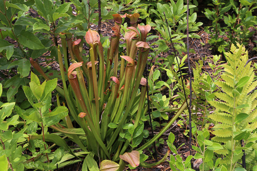 Sarracenia rubra has the typical narrow and erect hollow pitchers as seen in S. flava, S. jonesii, and S. oreophila, but it is a noticeably smaller plant. Read more at Vascular Plants of North Carolina.