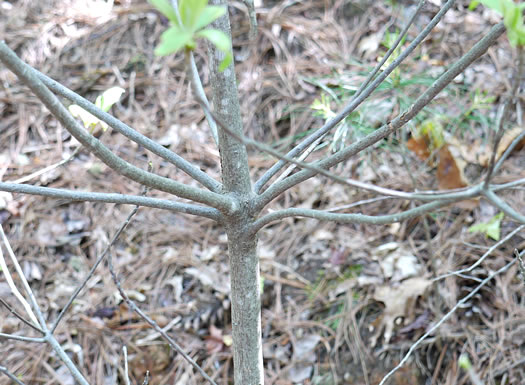 Showy tuft-like flower clusters in leaf axils of previous year's branches, per Forest Plants of the Southeast and Their Wildlife Uses (Miller & Miller, 2005).