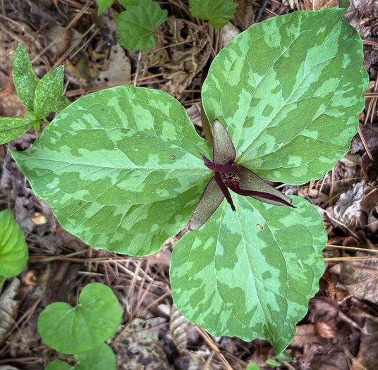 Leaves mottled with two colors, per Wildflowers of the Eastern United States (Duncan & Duncan, 1999).