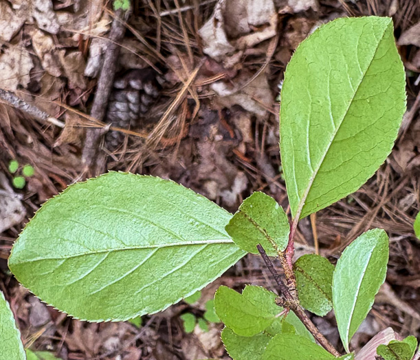 Leaves glossy, rather thick, fine-toothed, per Woody Plants of the Southeastern US: A Winter Guide (Lance, 2004).