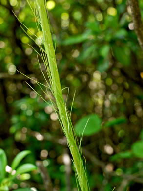 Leaf blades filiform-linear, keeled, rigid, margins serrulate, apex wiry pointed, densely tufted, per Flora of North America.