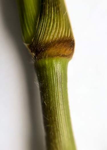 Leaf sheaths (at least the lower ones) papillose-hispid with spreading hairs, per Weakley's Flora (2020).