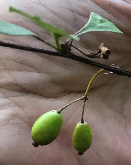 Fruit a pendant red berry, borne singly or 2-3 per cluster, per Woody Plants of the Blue Ridge (Lance).