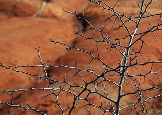 The slender twigs are zigzag and thorny, beset with small cuneate or narrowly obovate leaves, per Haws: A Guide to Hawthorns of the Southeastern US (Lance, 2014).