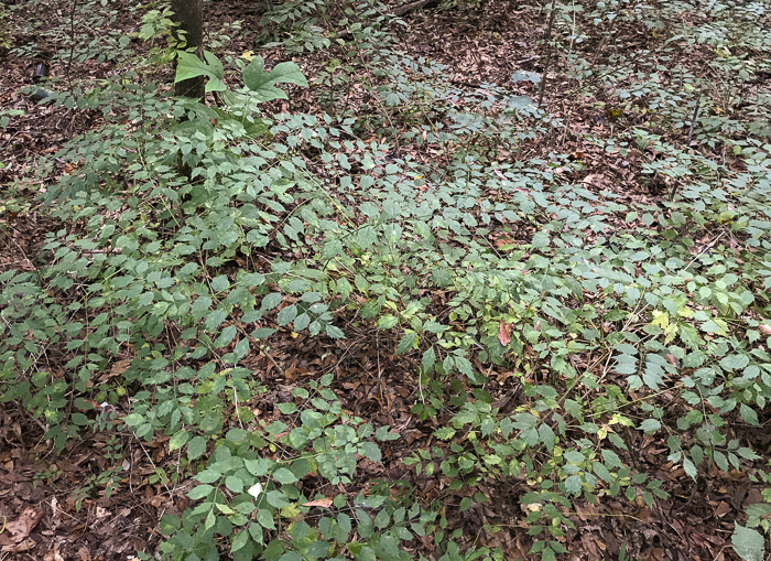 Leaves pinnately compound. Leaflets ovate, coarsely serrate, sharply pointed, per Vascular Flora of the Carolinas (Radford, Ahles, & Bell, 1968).