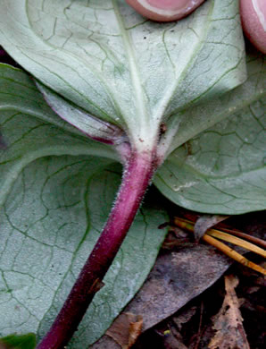 Uppermost stem is fuzzy with tiny hairs (vs. that of T. reliquum is smooth), per Trilliums of Georgia (Patrick, 2007).