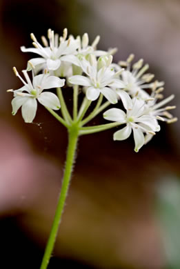 Fruits: Ellipsoid, blackish berries, about 0.3" long, in an umbel, per Wildflowers of Tennessee, the Ohio Valley, and the Southern Appalachians (Horn, Cathcart, Hemmerly, & Duhl, 2005).