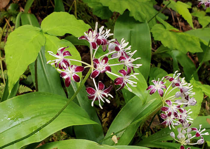 Clintonia umbellulata on the left; on the right is Veratrum parviflorum.