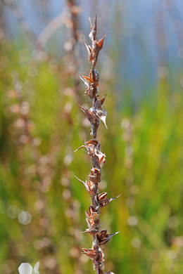 Fruiting stems with capsules that have opened and dispersed their seeds.