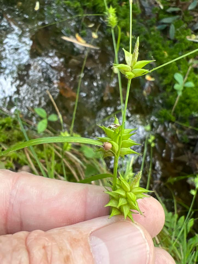 Inflated bladdery perigynia with sharp 2-pointed beaks are characteristic of section Vesicariae, per Vascular Plants of North Carolina.