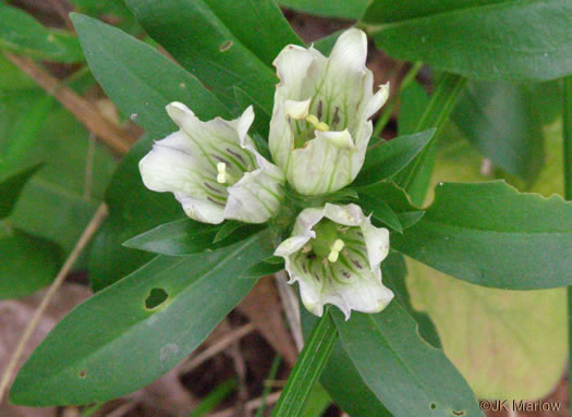 One of only 3 Gentiana species with predominantly white corollas, per Gentians of the Eastern US (Drake, 2011).