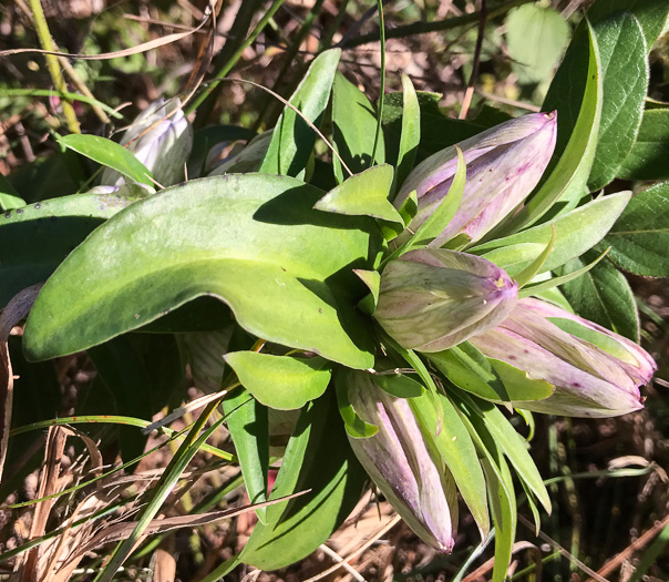 Unlike blue-flowering gentians, lower leaves decidedly wider above middle, per Atlantic Coastal Plain Wildflowers (Nelson, 2006).