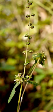 Female heads roundish, clustered in upper leaf axils below male spike, per Wildflowers of Tennessee, the Ohio Valley, and the Southern Appalachians (Horn, Cathcart, Hemmerly, & Duhl, 2005).