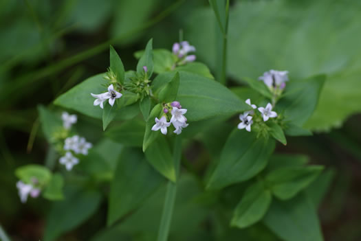 Flowers funnelform & in clusters; leaves ovate-lanceolate & sessile, per Wildflowers of the Southern Mountains (Smith, 1998).